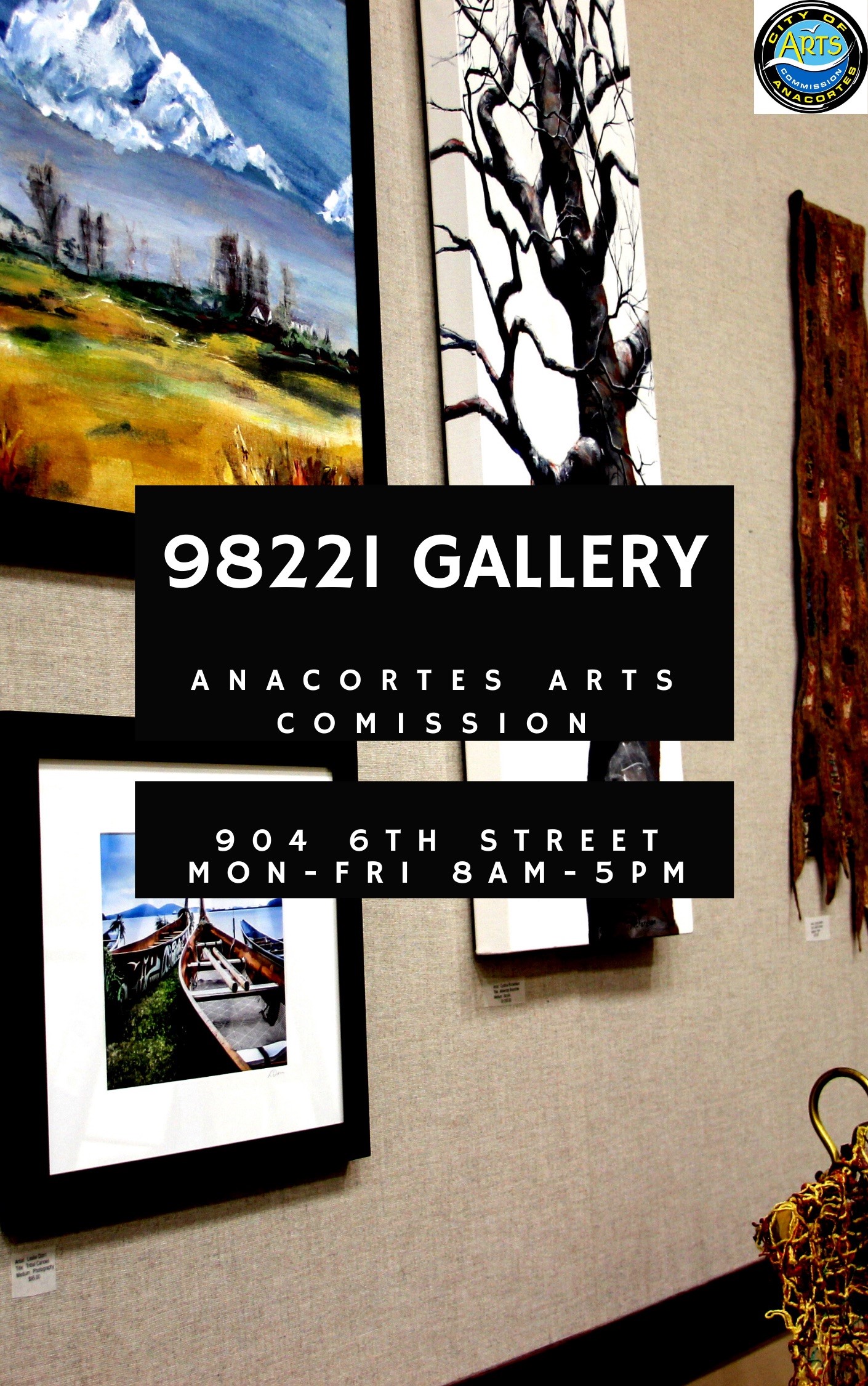 The Gallery is located at City Hall (904 Sixth Street) and is open from 8 am to 5 pm Monday through Friday. Art is available for sale with a portion of the price going to the purchase of public art in Anacortes. Purchases can be made in the Parks and Recreation office. Hint: art is displayed in the main entry and hall as well as the chamber at end of hall.