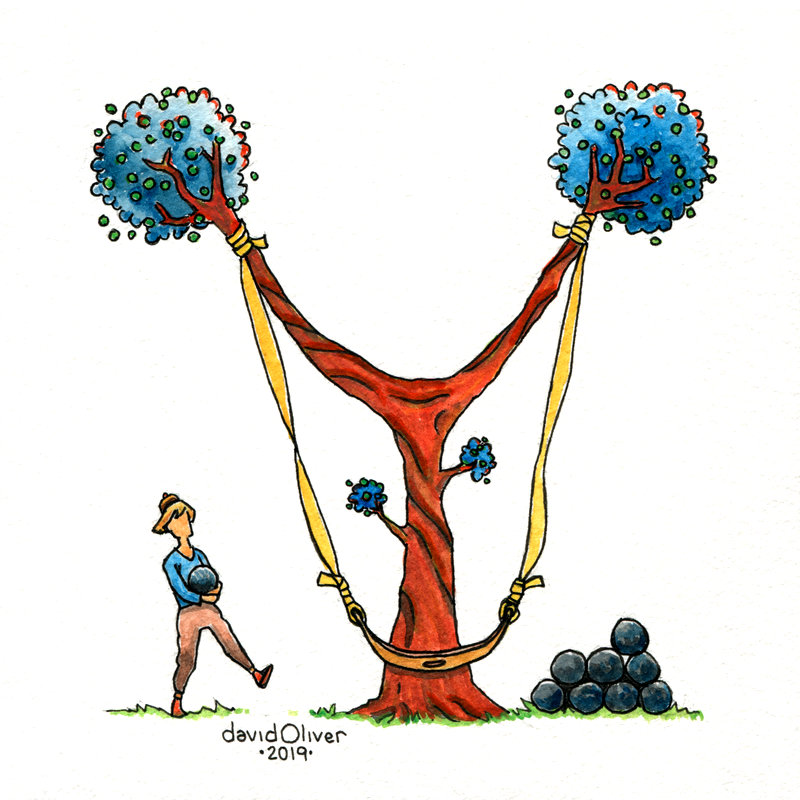 Sling—Print of my ink and watercolor illustration from my A Tree A Day collection. Printed with archival pigment-based ink on archival velvet rag paper. These superb prints look as great as the originals!