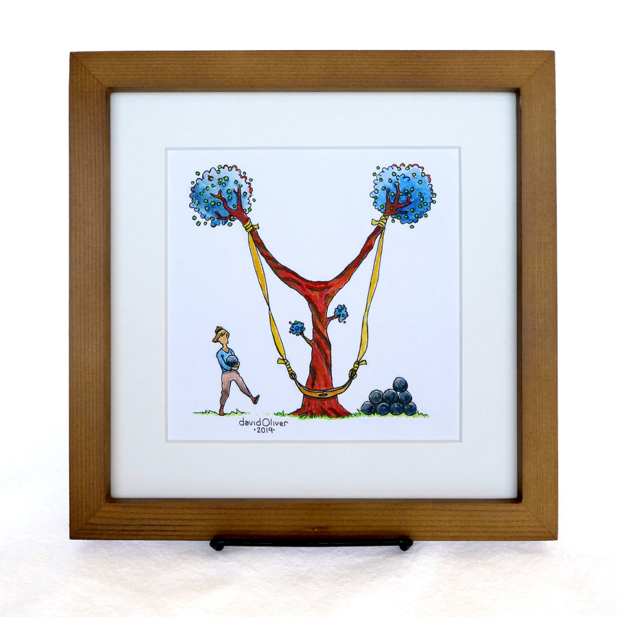 Sling—An original illustration from my A Tree A Day collection. Ink and watercolor on watercolor paper. Matted, framed and ready to hang.