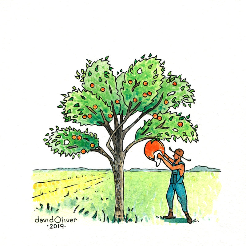 Ripe—Print of my ink and watercolor illustration from my A Tree A Day collection. Printed with archival pigment-based ink on archival velvet rag paper. These superb prints look as great as the originals!