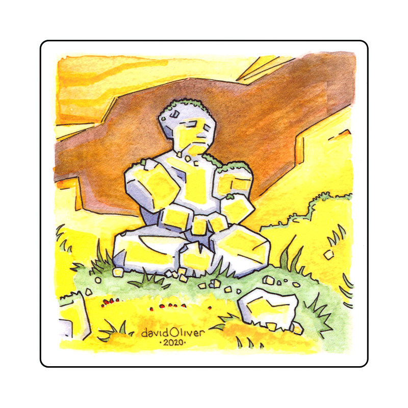Grounded—Desktop plaque of my ink and watercolor illustration from my Meditation collection. Printed on a wooden panel with high-gloss finish and built-in easel. This unique item is ready to display on a shelf or table top.