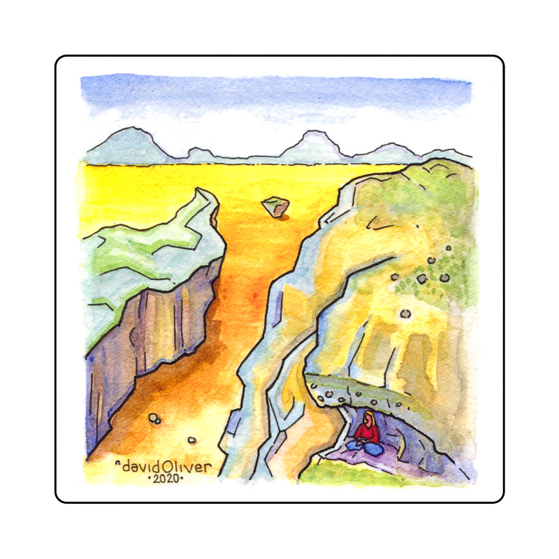 Stillness—Desktop plaque of my ink and watercolor illustration from my Meditation collection. Printed on a wooden panel with high-gloss finish and built-in easel. This unique item is ready to display on a shelf or table top.